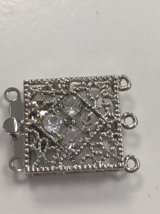 Klikslot vierkant met strass 2.5cm met 3 oogjes